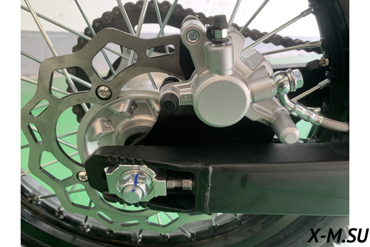 Колесные диски JHLmoto использует только бренда Unison – это алюминево-кремневые диски, максимально легкие и прочные! Резина на дисках в зависимости от характера мотоцикла – KENDA/Cordial. Буксаторы уже утановлены и они композитные – для уменьшения веса. Останавливают их тормозные вентилируемые диски KTM с тормозной системой ANJIE, все это закрыто кожухами от PRO CAKEN.