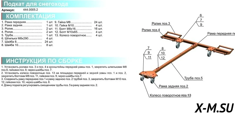 Подкаты для снегохода без регулировки по ширине лыж